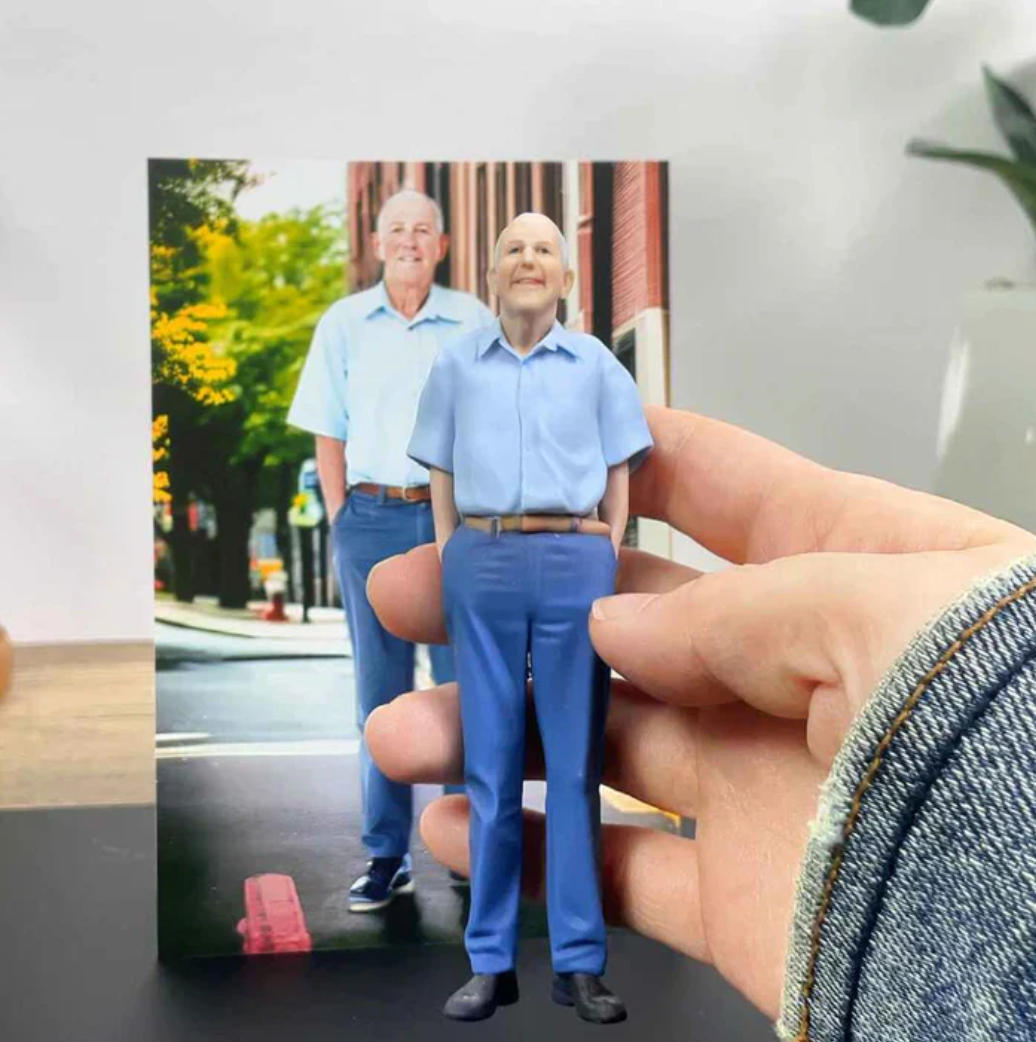 Choisissez les photos qui représentent le mieux la personne, et nous en créerons un souvenir 3D. Vous pouvez exposer la figurine chez vous ou l’offrir à quelqu’un qui mérite vraiment quelque chose d’exceptionnel.